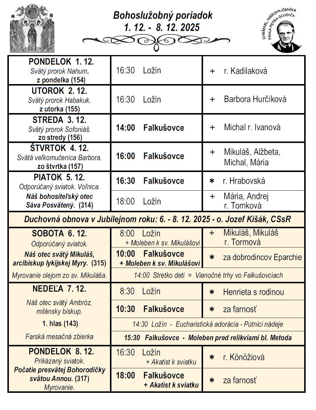 Liturgický program ⁜ Gréckokatolícka farnosť Falkušovce