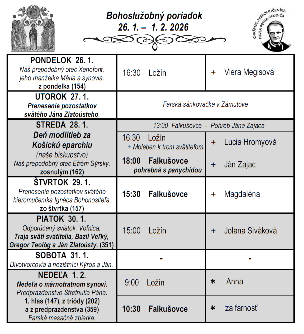 Liturgický program ⁜ Gréckokatolícka farnosť Falkušovce