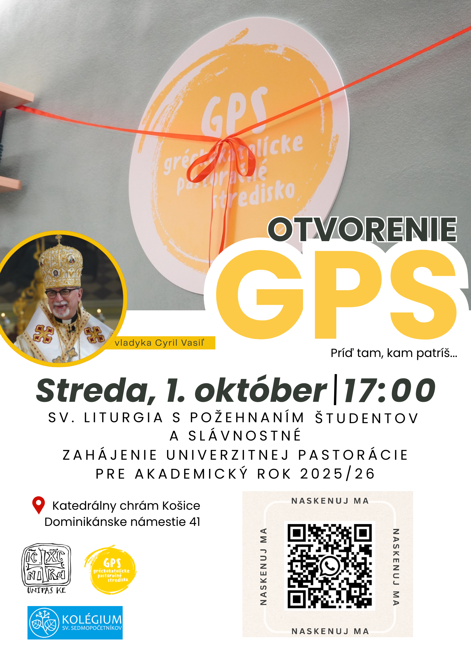 - GPC pozýva študujúcich v Košiciach na Otvorenie akademického roka, v stredu, 1. októbra o 17:00 hod. v katedrále. Viac na plagáte.