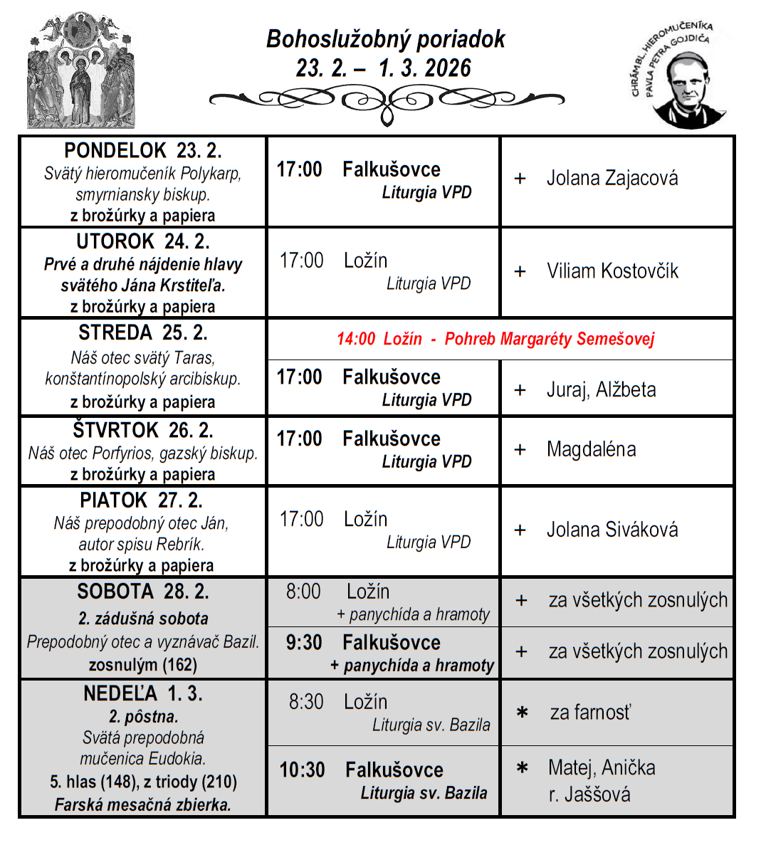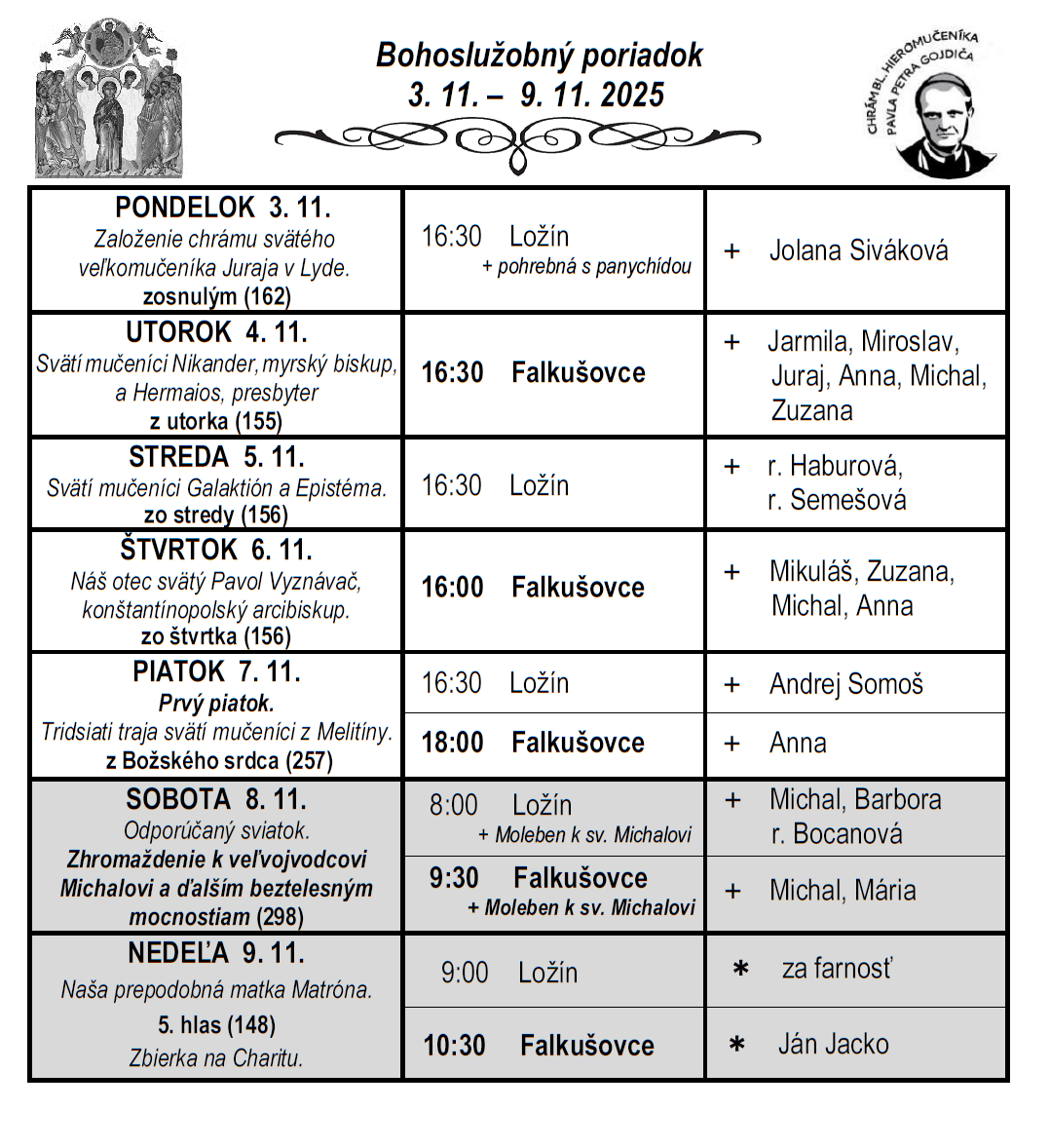 Liturgický program ⁜ Gréckokatolícka farnosť Falkušovce