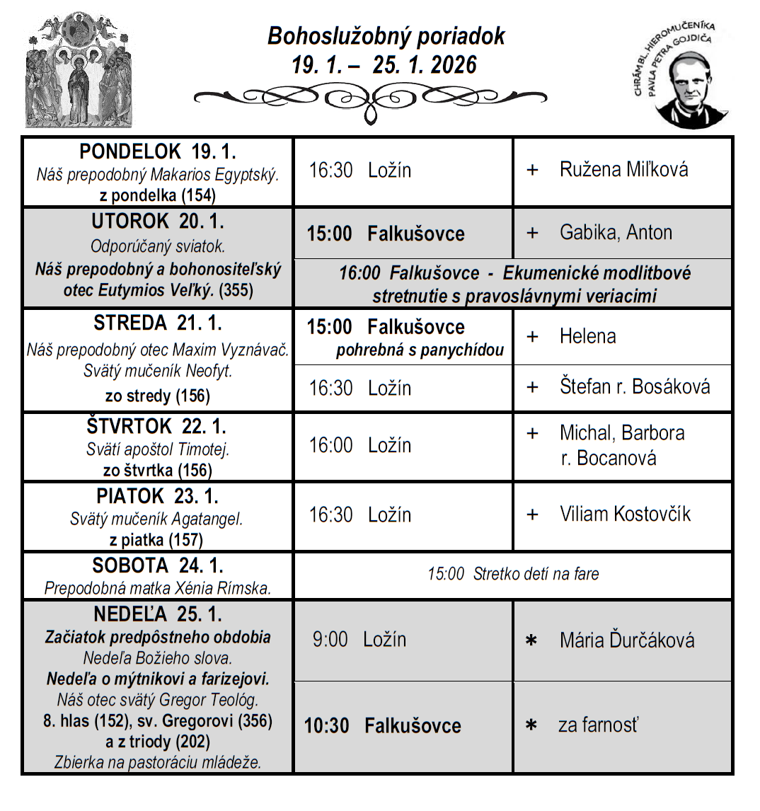 Liturgický program ⁜ Gréckokatolícka farnosť Falkušovce
